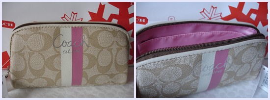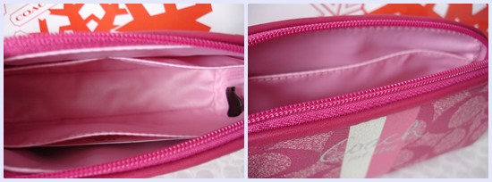 粉紅C Logo防水全皮質料,粉紅色真皮飾邊,內裡為粉紅色絲質布,有3個格層