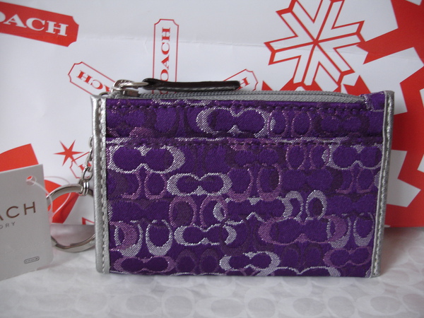 A3: COACH 新款紫色鑲銀邊壓紋C Logo 鑰匙零錢包