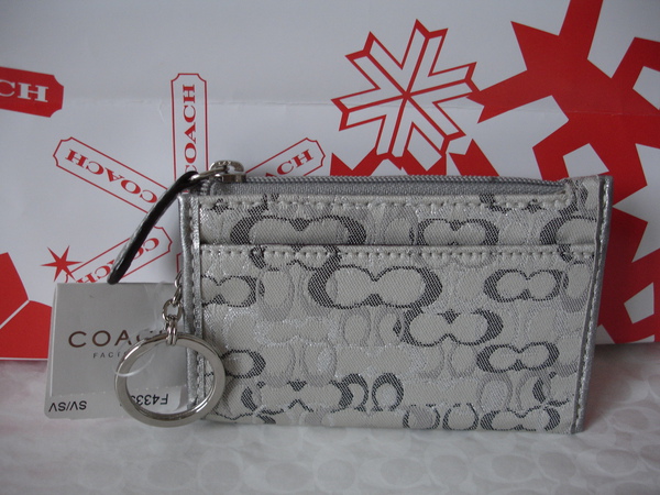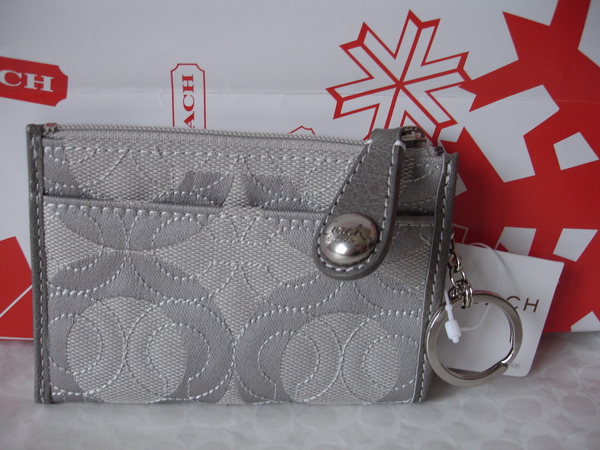 A4: COACH 新款銀灰色鑲銀邊壓紋C Logo 鑰匙零錢包