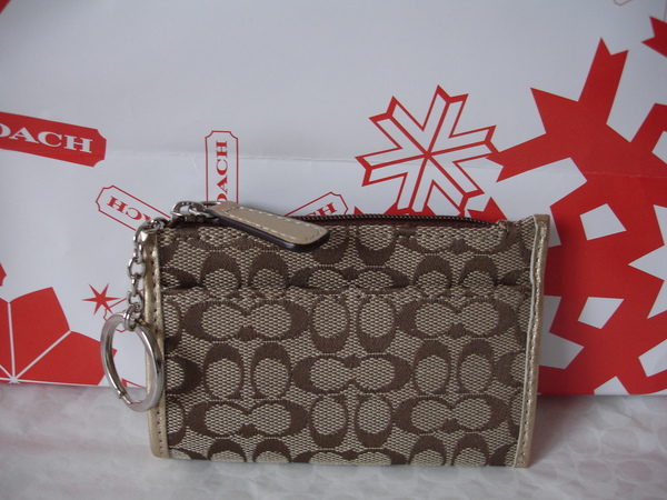 A1: COACH 新款卡其金色壓紋C Logo 鑰匙零錢包