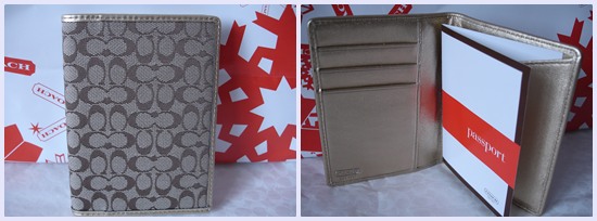 A8: COACH 卡其金邊壓紋 C Logo護照夾
