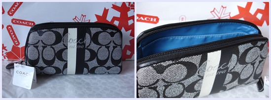 深藍 C Logo防水全皮質料,深藍色真皮飾邊,內裡為天藍色色絲質布,有3個格層
