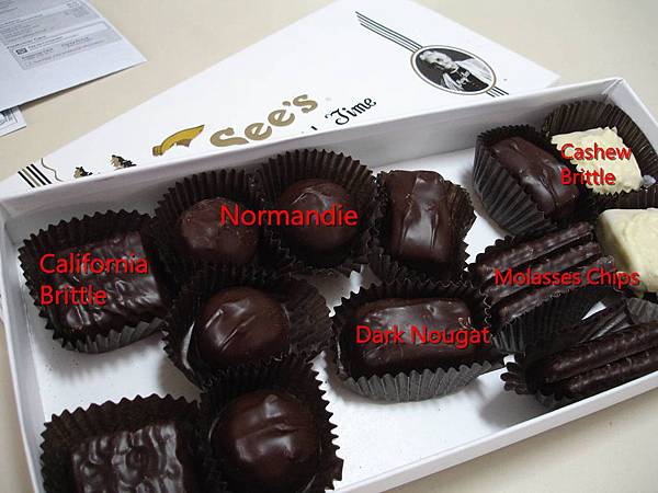 前幾天幫客戶去買了客製的See's Candies,自己也順便買了一盒(好可怕的順便)